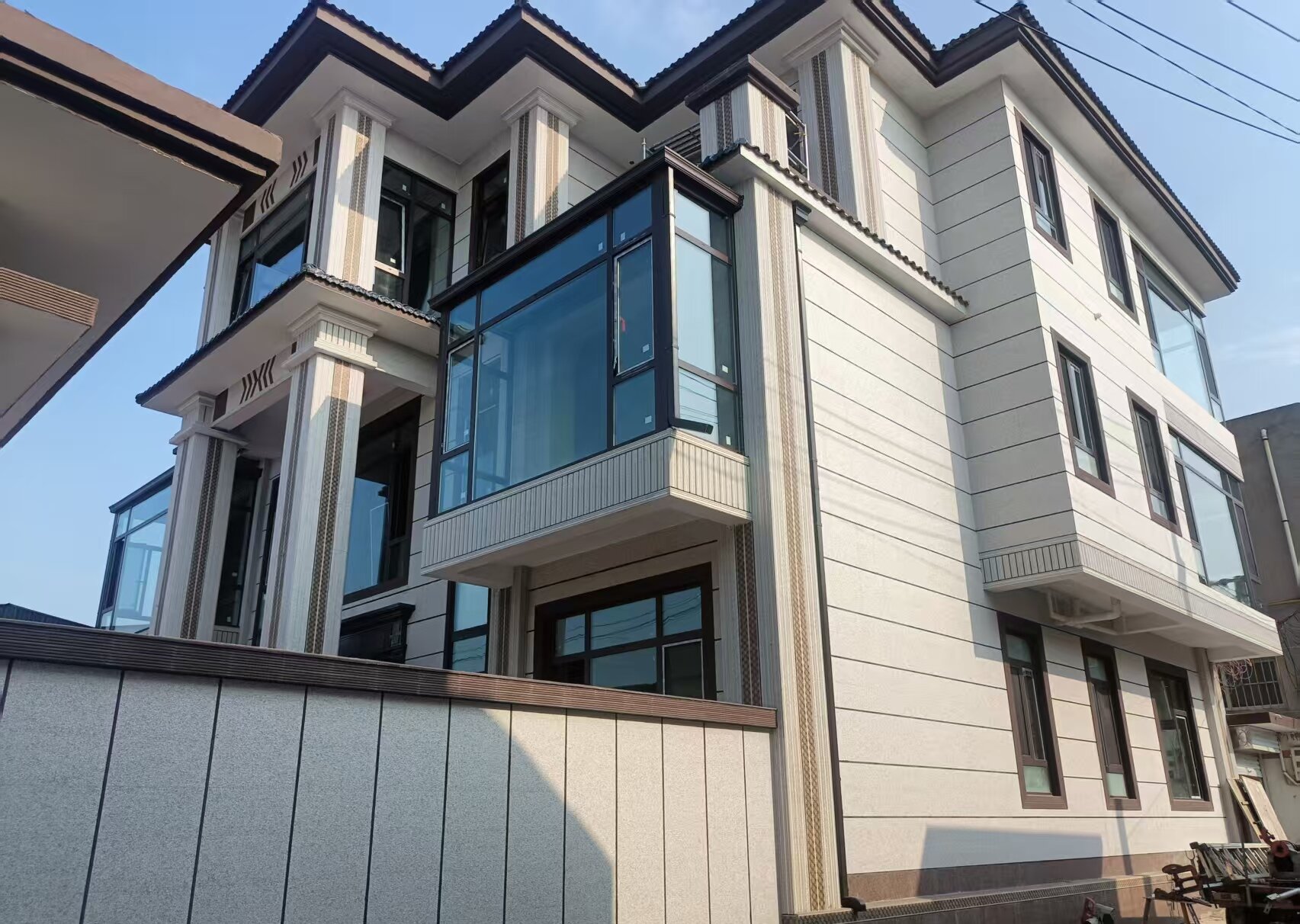 整體設計既保持了現代風的簡潔大氣,又通過材質與色彩的巧妙搭配,讓立面層次分明、細節豐富,呈現出“大而不空、簡而不凡”的高級質感。