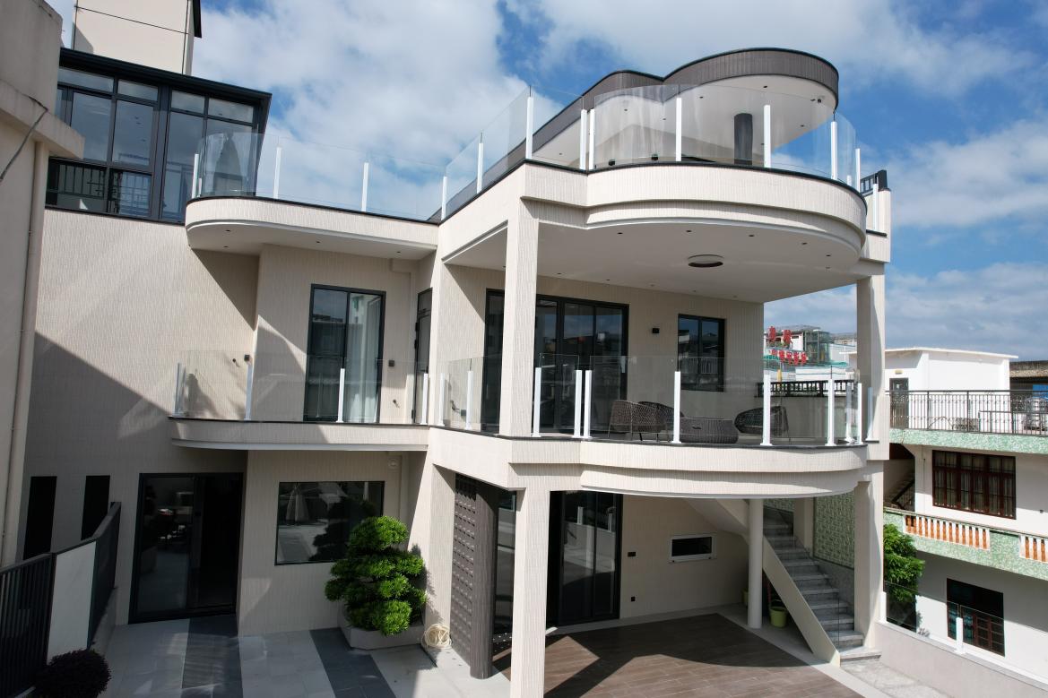 紅色丹霞石賦予建筑熱情與活力,大琇巖則增添通透與純凈感,整體外觀在現代簡約中透出精致與高級,營造出既時尚又富有生活氣息的理想人居環境。無論是遠觀整體輪廓,還是近賞材質細節,都能感受到這棟別墅在設計與工藝上的用心,真正做到了“經典不過時,細節見品質”。