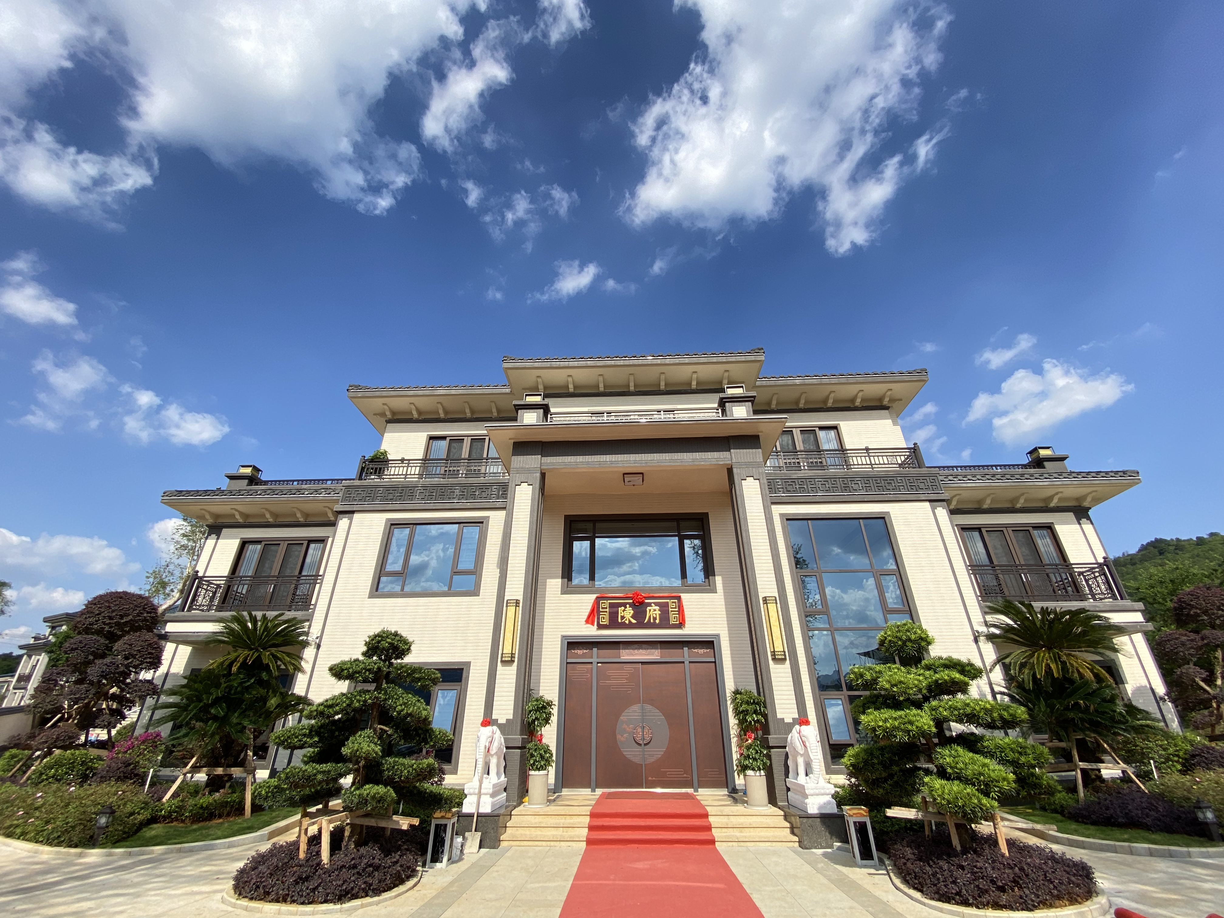傳統的院落格局與現代工藝相結合,青磚灰瓦、廊檐回繞,細節處處體現中式建筑的細膩與雅致。整體外觀不張揚、不浮夸,在沉穩中透出高雅格調,營造出寧靜、舒適又富有文化氣息的居住氛圍。